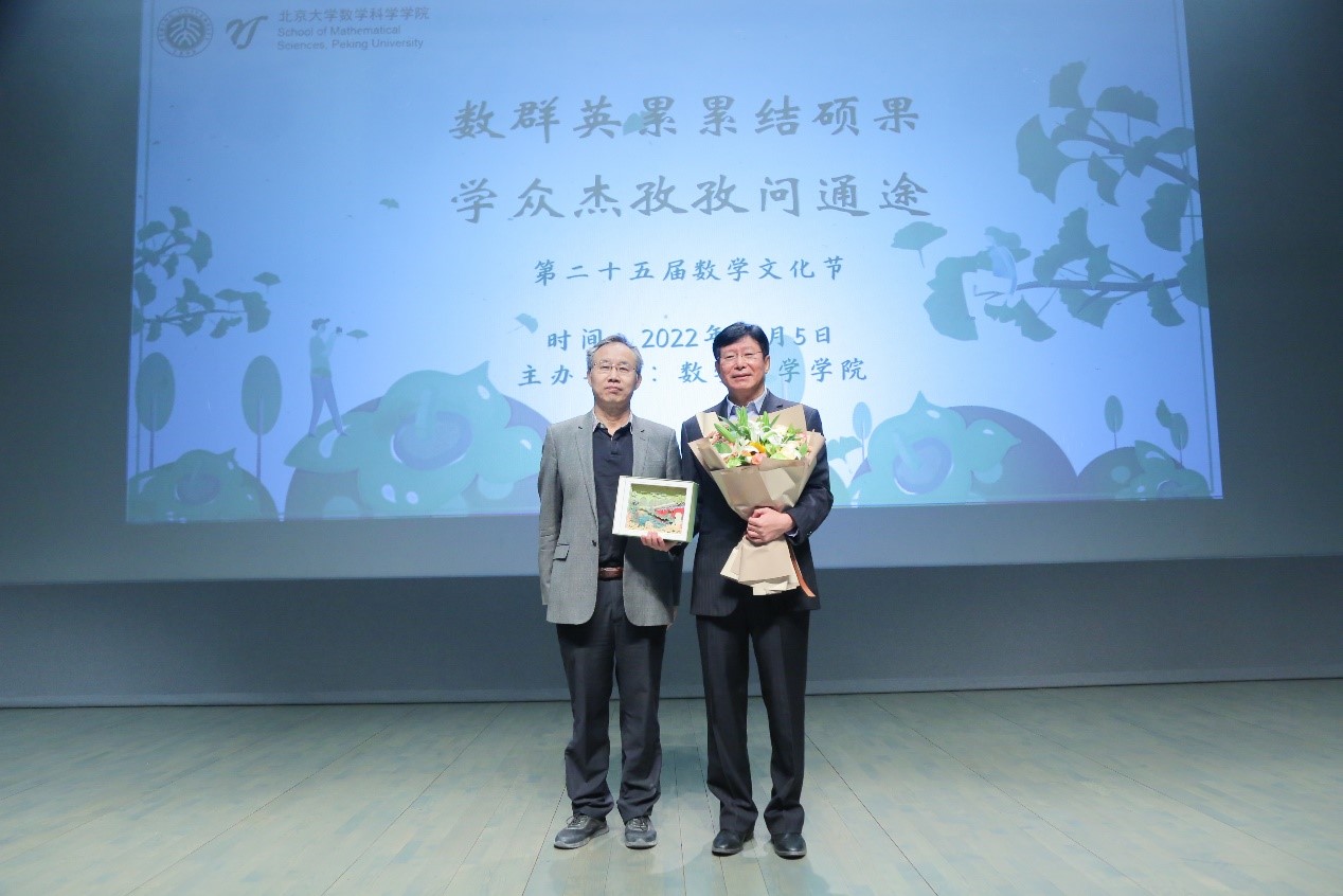 李若为开幕式致辞。他从数学文化节的发展历史谈起,结合二十大报告中习近平总书记关于教育、科技、人才的论述,表达了北大数学始终坚持“造就拔尖创新人才,聚天下英才而用之”的育人理念。他说,百余年来,一代代北大数学人承前启后、继往开来,在祖国大地上谱写下属于自己的人生华章。如今,正值青春的北大数院学子要接过历史的接力棒,循着前辈的脚步不断前进,更要发挥自己的优势与能力,不断展现出北大数院人的风采。他指出,大家不仅要专注数学学习与科研,还要不断推广数学文化,展现数院学子对于数学的独特理解,描绘数学的别样风采,让更多人认识、了解数学。