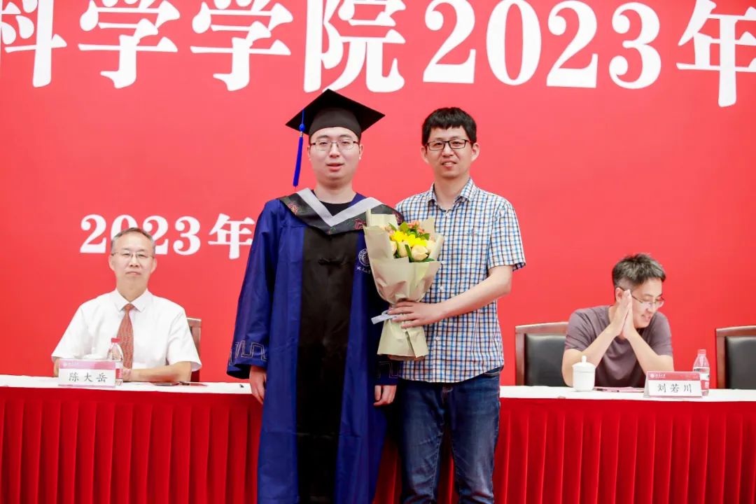 刘若川为获得2023年北京大学优秀博士学位论文的同学颁奖,获此奖项的毕业生有:杨成浪、辜睿皓、金鹏飞、杨帆。