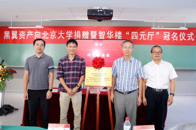 9月15日下午,北京大学智华楼“四元厅”捐赠冠名仪式暨首场学术报告在智华楼四元厅隆重举行。“四元厅”由上海黑翼资产管理有限公司捐资冠名,以此支持北大数院的建设发展,助力北大数学建设有中国特色的世界一流学科。