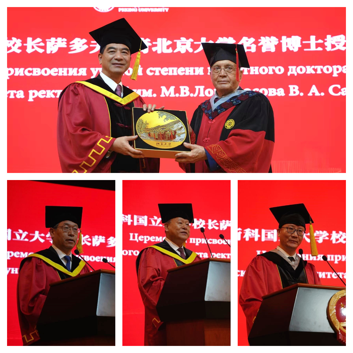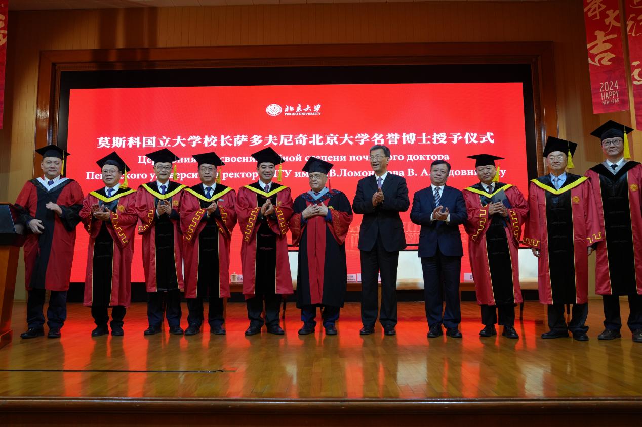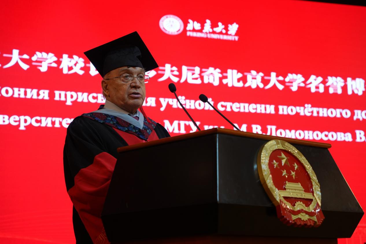 教授、中俄数学中心主任张继平院士,北京大学党委常委、副校长张锦院士分别就萨多夫尼奇的学术成就及对于两校乃至两国教育交往所作出的贡献进行介绍。研究生院常务副院长陈鹏主持仪式。