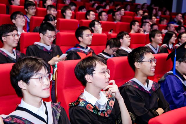 党委书记兼2020级本科2班第二班主任刘雨龙,教师代表、数学系教授郭帅,院友代表、信息与计算科学专业2003级本科生姜宇,毕业班班主任老师们,2024届全体本、硕、博毕业生以及部分毕业生家长朋友们共同参加此次典礼。典礼由院党委副书记董子静主持。