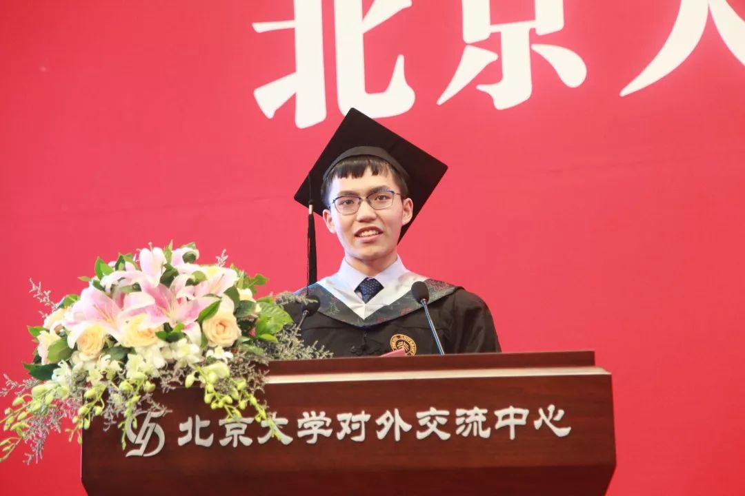 毕业生代表发言环节,2015级本科生夏铭涛、2017级硕士生王瞻、2014级博士生王钰铭向在座师生们分享了自己的北大数院故事,他们带大家一起回忆了在北大学习、科研、生活、成长的点点滴滴,分享了自己与数院、与数学之间的故事,也感谢了北大与至尊国际