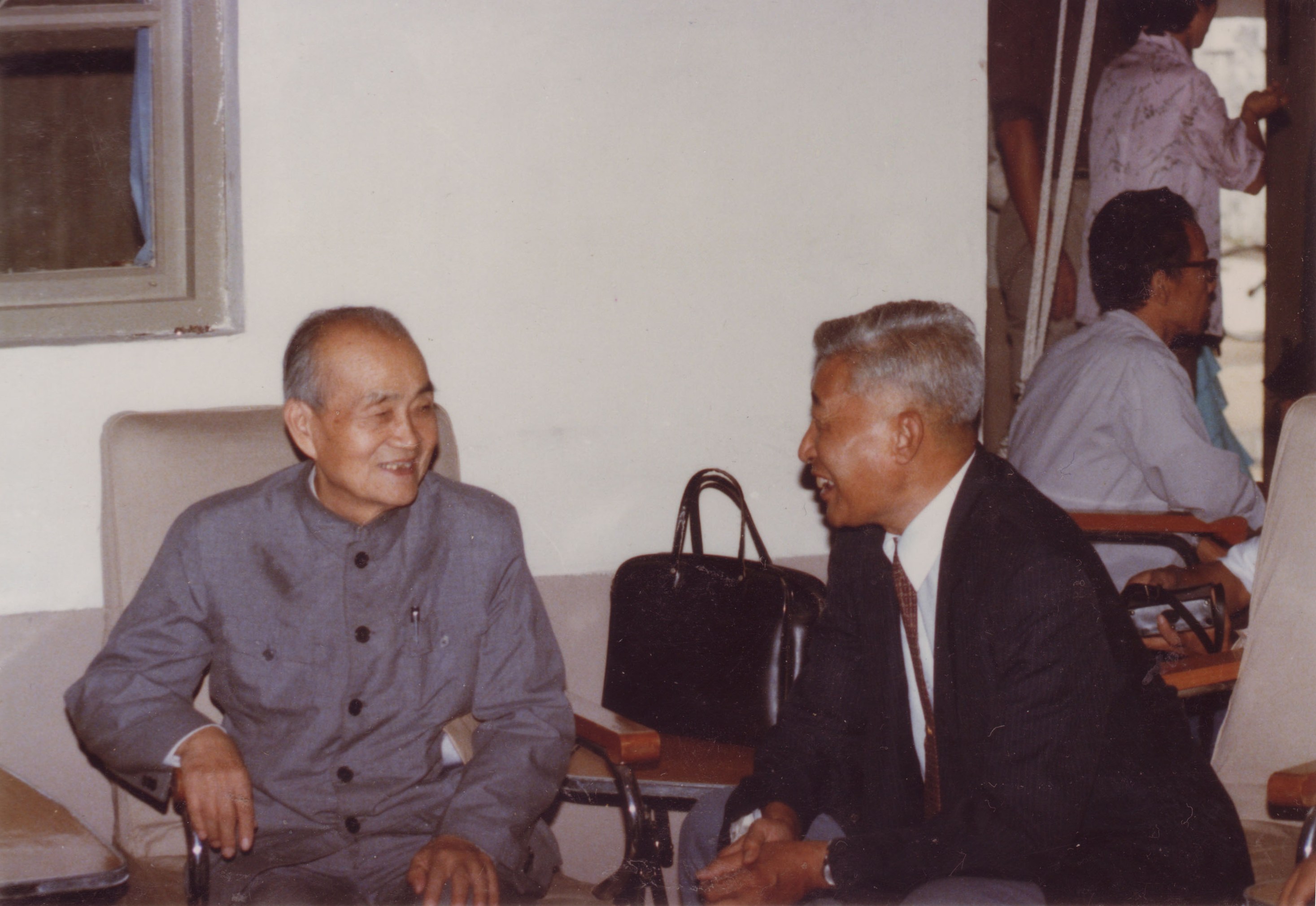1985年9月10日,胡乔木(左)与丁石孙(右)